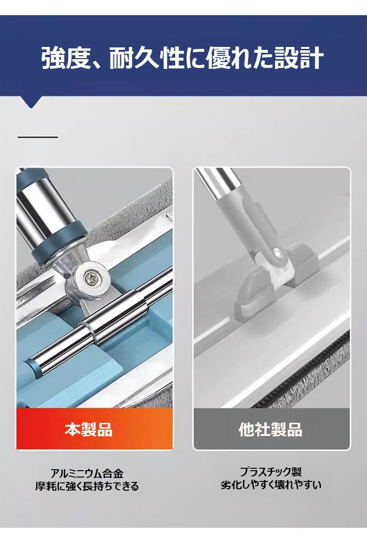 乾拭きと水拭きの両方に対応するモップの比較画像